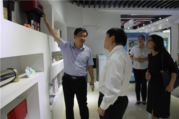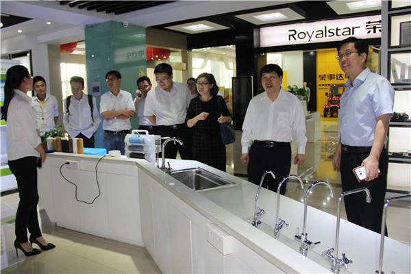 在榮事達智能家電研發中心產品展示廳,領導們饒有興趣地參觀了榮事達凈水機展區,總經理支新郁講解了凈水機產品類型及所運用的反滲透過濾技術,并介紹了公司為唐山世界園藝博覽會、三亞鳳凰國際機場等場所安裝的商用凈水設備。當得知榮事達與印度德里公共事務委員會組織就新德里城區安裝自動售水設備項目達成合作意向,張博士一行人員對公司在凈水工程領域取得的突破表示了衷心的祝賀。