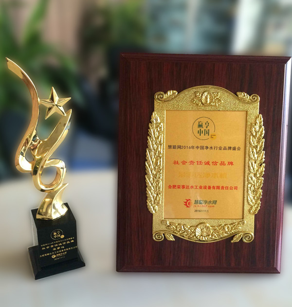 2016年11月25日,“贏享中國”2016年中國凈水產(chǎn)業(yè)生態(tài)大會暨品牌盛會頒獎(jiǎng)盛典于北京釣魚臺國賓館隆重召開,合肥榮事達(dá)水工業(yè)設(shè)備有限責(zé)任公司榮獲品牌盛會2016“社會責(zé)任誠信品牌”獎(jiǎng)。
