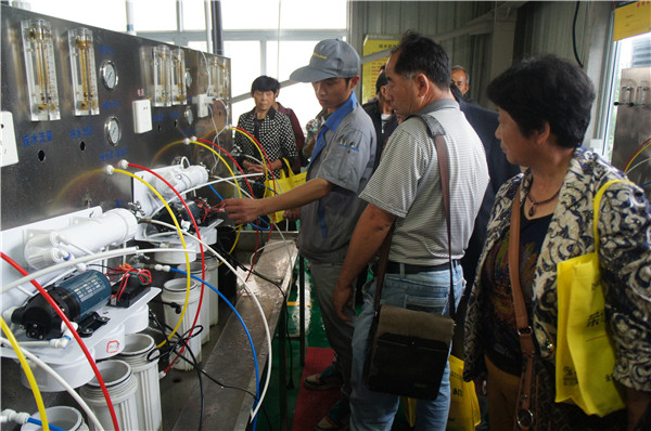 在產品展廳,接待人員給消費者解說了榮事達全線產品類別,并講解了純水機、超濾機、飲水機、一體機等產品的不同功能及適用地區。參觀中,許多鄉鎮地區消費者反映家里井水水垢水堿太嚴重、雜質多,詢問有沒有適合其使用的凈水機,接待人員向其推薦了榮事達純水機,詳細講解了純水機運用RO反滲透技術、五級過濾系統,能夠高效去除水垢、水堿、農藥、化肥、細菌、重金屬等有害物質的過濾效果。