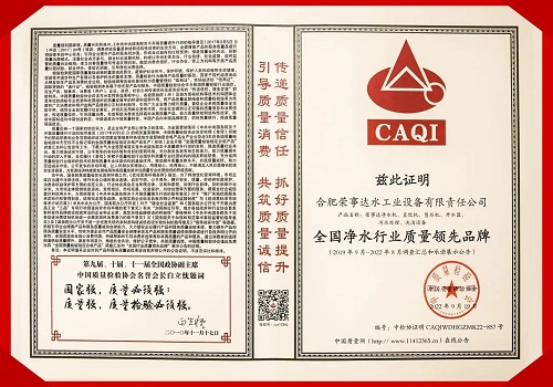 共筑質量誠信,建設質量強國。中國質量檢驗協會組織開展的2022年全國“質量月”企業質量誠信倡議專題活動中,榮事達水工業集團憑借良好的社會形象及卓越的產品品質,獲得協會以及權威專家的一致認可,榮膺“全國質量誠信標桿企業”“全國凈水行業質量領先品牌” “全國產品和服務質量誠信品牌”“全國質量檢驗穩定合格產品” “全國質量信譽保障產品” 五項榮譽。