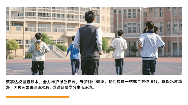 此外,榮事達校園直飲水還可根據學校的具體需求量身定制直飲方案。從需求分析、方案設計、設備選型到安裝調試、后期運維,榮事達提供了一站式、全方位的服務,確保了直飲水項目的順利實施與高效運行。