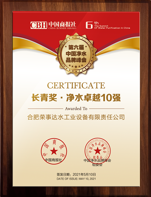 【號外】熱烈祝賀榮事達榮獲2021長青獎“凈水卓越10強”、“商用凈水標桿企業”等多項榮譽