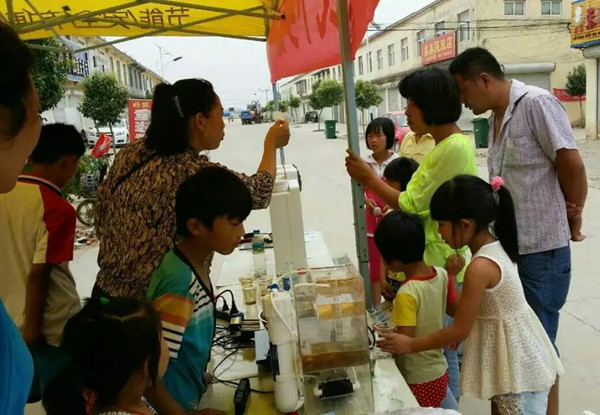 據(jù)了解,為了讓當(dāng)?shù)鼐用窳私庾约业乃|(zhì)狀況,活動前一天,當(dāng)?shù)卮砩毯蜆s事達水工業(yè)的工作人員下鄉(xiāng)為居民們免費檢測水質(zhì)。結(jié)果表明,當(dāng)?shù)氐乃|(zhì)偏硬,重金屬含量偏高,不僅異味重,而且口感較差,飲水狀況令人堪憂。