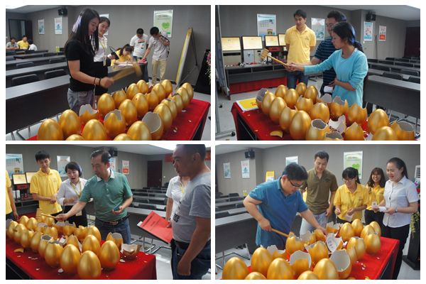 在產品展廳,王部長解析了全線凈水產品類別、功用、適用市場,并通過科學實驗展示了純水機的過濾效果。其中2016款新品充分結合市場需求,種類齊全,既有可攻克農村地區水壓不足不穩狀況的自吸增壓凈水機,也有能滿足城市居民追求健康時尚生活的高端機型,頗受好評。在產品知識講座中,渠道開發部董部長將濾芯、慮瓶、壓力桶、泵、龍頭等配件與其他廠家的產品進行比較,從產品質量、安裝拆卸便攜性、用戶使用體驗等多個方面剖析榮事達凈水機的質量和性能優勢,學員們對榮事達注重細節和使用便捷性的產品設計理念十分認可。